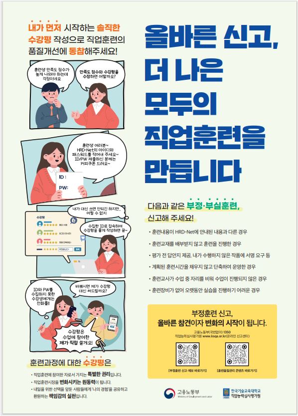 직업능력심사평가원 부정훈련관리센터의 2024년 2분기 부정훈련 예방 포스터 공유드립니다.